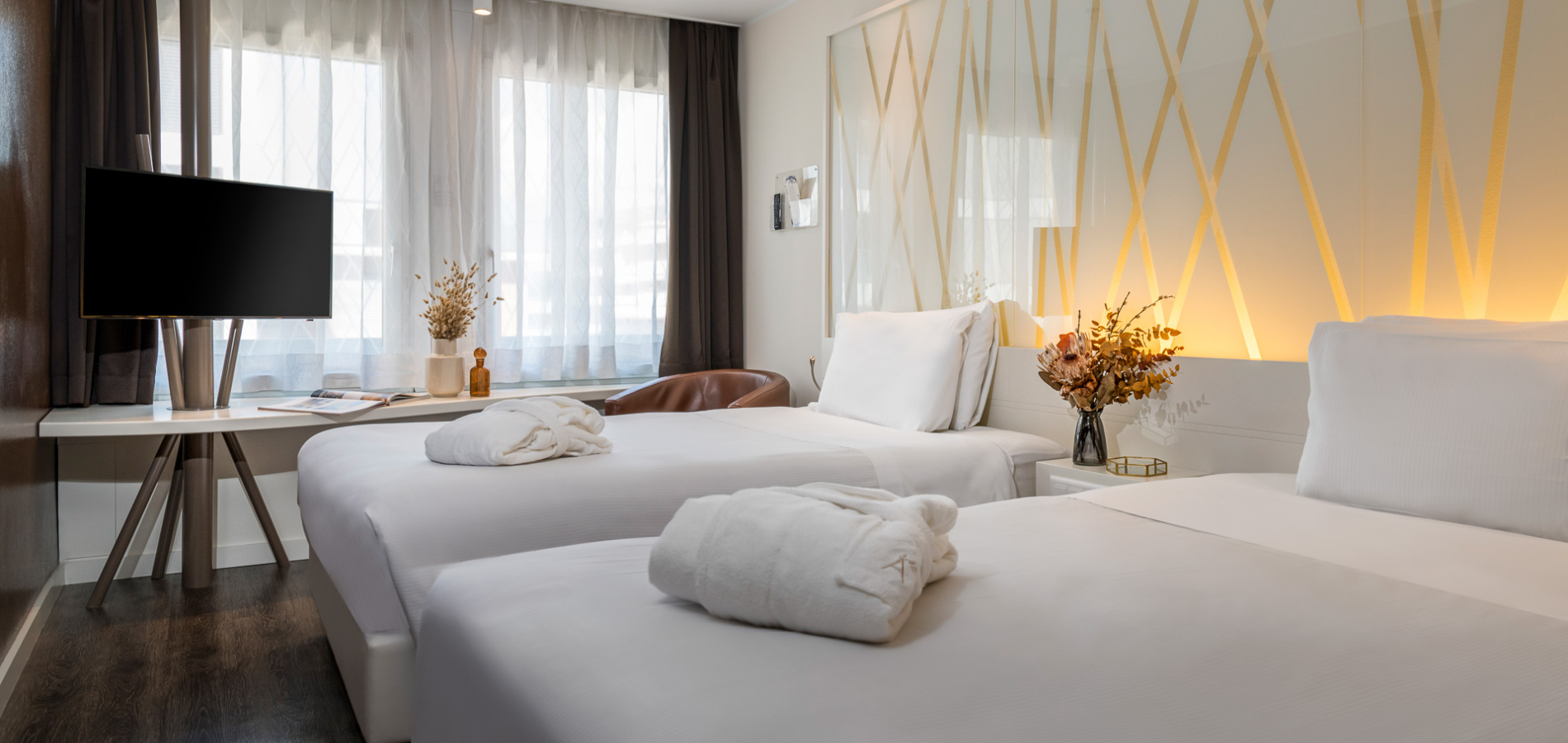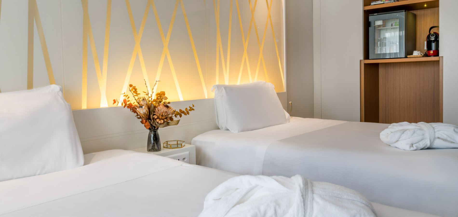 Ideale per le grandi famiglie, questa camera di 48 mq dal design moderno e minimalista con pavimento effetto legno è composta da 2 camere comunicanti, di cui una matrimoniale e una due letti da 140*200, con doppio bagno. E’ dotata di riscaldamento e aria condizionata autonomi, minibar, bollitore su richiesta alla reception, telefono, cassaforte, TV Samsung a schermo piatto LED da 40 pollici, connessione Wi-Fi.